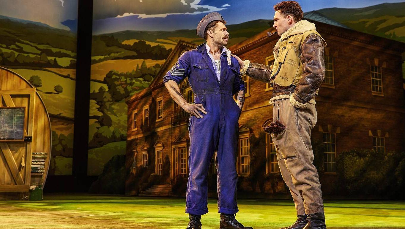 The clever set design by Mark Thompson allows us to move swiftly (when it doesn’t break down) between the RAF base and Malaprop Hall, and the portrayal of the planes as they fly off in battle is very well done by video designer Jeff Sugg.
