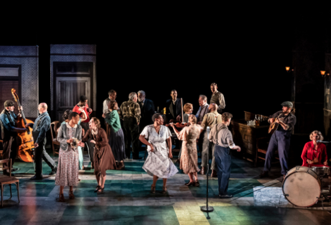 The first thing to say about this is that it is not your traditional jukebox musical. In fact, I wouldn’t necessarily say it was your traditional musical. I’d describe it more as a play with music. It has a real feel of ‘Of Mice and Men’ – hardly surprising given the setting (albeit the classic Steinbeck novel is rural, and this is urban). The lighting design (Mark Henderson) along with the costume and set designs (both by Rae Smith) are incredibly effective at evoking the rust and industrial setting of what was a town built on mining, steel, and cargo shipping during the early 20th century.